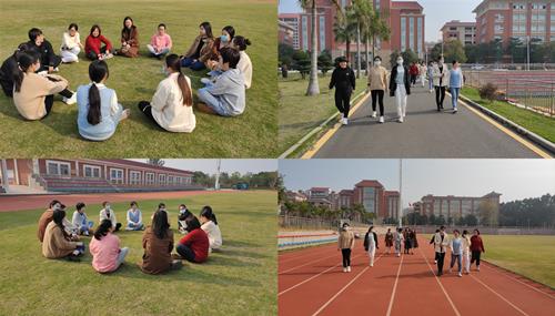 主題活動(dòng)包含繞校健步行活動(dòng)及操場(chǎng)趣味座談會(huì),女職工們精神飽滿、積極參與,一陣陣歡聲笑語(yǔ)在美麗的校園操場(chǎng)上響起。大家促膝圍坐,說(shuō)一說(shuō)自己的美好理想,談一談自己的奮斗目標(biāo),在愉快輕松的環(huán)境下分享著自己在工作與生活中的心得體會(huì)、人生感悟。