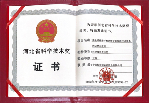 通用技術(shù)中紡院中紡標(biāo)"再生纖維素纖維定性定量檢測(cè)技術(shù)體系的研究與應(yīng)用"項(xiàng)目榮獲2022年度河北省科學(xué)技術(shù)進(jìn)步獎(jiǎng)