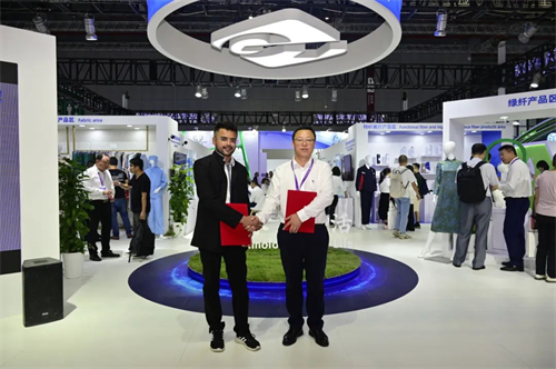 通用技術新材展團現場國內外客商絡繹不絕,綠纖、特纖等相關產品尤其受到關注,通用技術新材展團與幾十家客戶達成了合作意向。中紡綠纖與巴基斯坦公司SARA TRADE INTERNATIONAL 簽訂了戰略合作協議。
