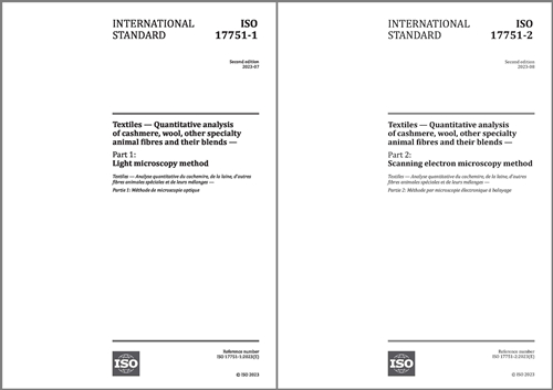 近日,由內蒙古鄂爾多斯資源股份有限公司、通用技術中紡院中紡標共同起草的ISO 17751-1:2023《紡織品 山羊絨、綿羊毛、其他特種動物纖維及其混合物定量分析 第1部分:光學顯微鏡法》和ISO 17751-2:2023《紡織品 山羊絨、綿羊毛、其他特種動物纖維及其混合物定量分析 第2部分:掃描電鏡法》系列國際標準,正式發布。
