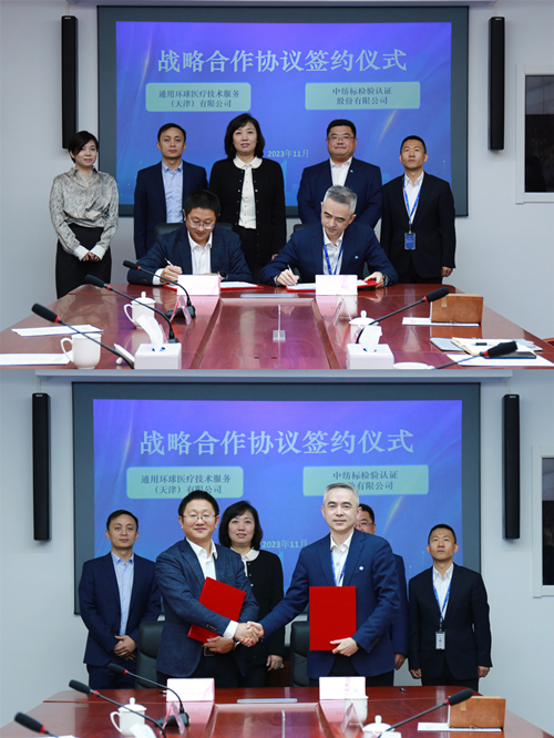 11月22日,通用技術中紡標檢驗認證股份有限公司(以下簡稱“中紡標”)與通用環球醫療技術服務(天津)有限公司(以下簡稱“環球技服”)就醫療市場計量業務成功簽署戰略合作協議。中紡標總經理李斌、環球技服總經理黃重陽代表雙方簽署合作協議,通用環球醫療集團有限公司總經理助理王芳、通用技術高新材料集團有限公司市場協同部總經理單世寶等出席儀式并見證簽約。