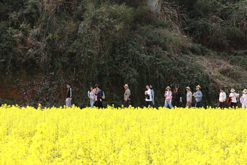 伴著和煦的春風(fēng),滿載著職工的大巴車從公司出發(fā)。一路上大家歡聲笑語、其樂融融,大概一個半小時車程后,大家到達(dá)了此次活動的第一站——陳蔡千畝油菜花田。景區(qū)內(nèi)盛開的油菜花競相爭艷,散發(fā)出濃濃春意。大家卸下平日工作中的緊張和疲憊,漫步于油菜花田,紛紛拿出相機拍照留念,盡情享受春光里的無限美好。
