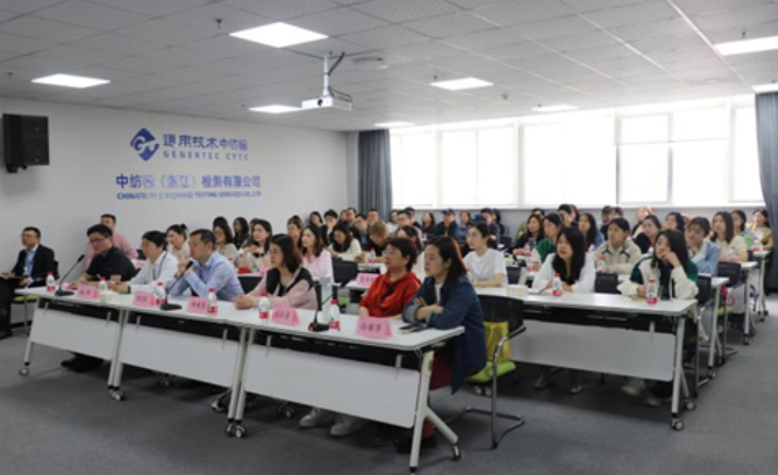 5月11日上午,通用技術浙江中紡標與雅瑩集團下屬雅瑩書院共同開展功能性紡織品研學活動。雅瑩集團面料開發(fā)、面料采購等相關部門共計53人參加了此次活動,浙江中紡標培訓老師做了關于功能性紡織品檢驗標準、實驗環(huán)境以及產(chǎn)品特性等相關知識培訓。浙江中紡標總經(jīng)理助理胡凱通過現(xiàn)場講解,幫助學員更清晰的了解功能性相關檢測知識。