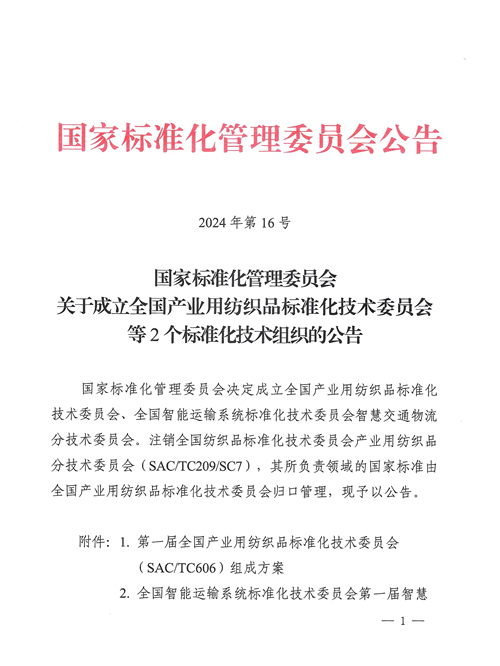 國標(biāo)委批準(zhǔn)成立全國產(chǎn)業(yè)用紡織品標(biāo)準(zhǔn)化技術(shù)委員會(TC606)