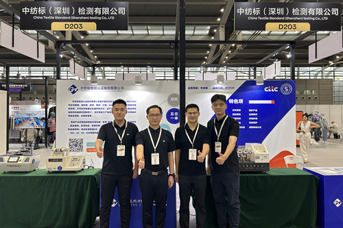 本次展會(huì)深圳中紡標(biāo)攜手深圳標(biāo)準(zhǔn)認(rèn)證聯(lián)盟共同參展。在展位上圍繞“標(biāo)準(zhǔn)引領(lǐng)服裝高質(zhì)量發(fā)展”主題,給眾多到來的客戶講解了深圳標(biāo)準(zhǔn)認(rèn)證政策,以及推介優(yōu)質(zhì)的檢測(cè)認(rèn)證服務(wù),向客戶傳遞高標(biāo)準(zhǔn)引領(lǐng)、高質(zhì)量發(fā)展的理念,同時(shí)針對(duì)校服及定制服的主要風(fēng)險(xiǎn)項(xiàng)目進(jìn)行現(xiàn)場(chǎng)測(cè)試展示,讓客戶更加直觀了解到其測(cè)試原理和過程。