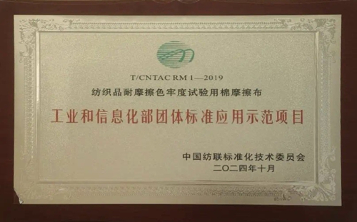 喜訊丨中紡標棉摩擦布標準樣品入選工信部百項團標應用示范項目
