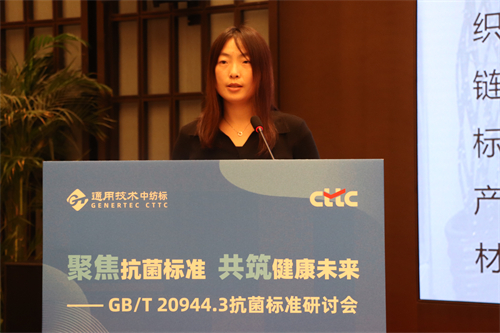 中紡標內(nèi)設全國紡織標準與耗材中心,負責試驗用耗材及標準樣品的咨詢、研發(fā)及供應工作。先后承擔了十多項國家標準樣品和團體標準樣品的研復制工作。中紡標標準耗材部李賢雯在《抗菌標準樣品項目介紹》推介中,詳細介紹了由中紡標主導研制的“測定紡織品抗菌性能用控制織物標準樣品”的研制流程、技術要求、樣品制備、樣品檢驗等內(nèi)容,為紡織品抗菌檢測提供標準標樣。