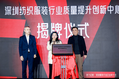 活動(dòng)現(xiàn)場(chǎng),深圳市紡織行業(yè)協(xié)會(huì)會(huì)長(zhǎng)劉士杰,深圳市服裝行業(yè)協(xié)會(huì)會(huì)長(zhǎng)潘明和中紡標(biāo)檢驗(yàn)認(rèn)證股份有限公司總經(jīng)理李斌共同為 “深圳紡織服裝行業(yè)質(zhì)量提升創(chuàng)新中心” 揭牌。該中心圍繞質(zhì)量提升與品牌培育及推廣等方面展開(kāi)工作,將致力于成為深圳市紡織服裝行業(yè)質(zhì)量基礎(chǔ)設(shè)施“一站式”服務(wù)平臺(tái)和創(chuàng)新載體,為行業(yè)內(nèi)企業(yè)提供全方位、綜合性的服務(wù)和支持,促進(jìn)產(chǎn)業(yè)協(xié)同發(fā)展,打造具有國(guó)際競(jìng)爭(zhēng)力的紡織服裝產(chǎn)業(yè)集群。