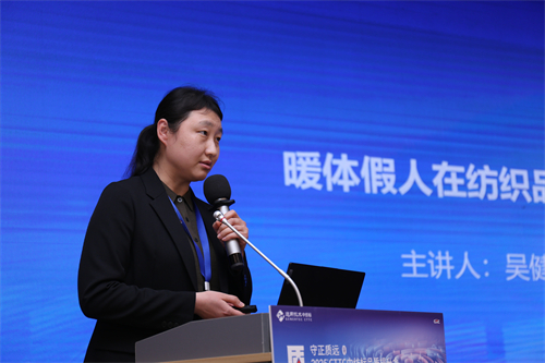 中紡標研發(fā)部吳健春在《暖體假人在紡織品保暖性評價中的應用》的報告中,重點從基于暖體假人的保暖性測試方法及保暖性、舒適性評價幾方面與現(xiàn)場嘉賓進行探討。中紡標暖體假人系統(tǒng),憑借卓越的測試精度和廣泛的應用范圍,能夠更加真實地模擬人體與環(huán)境之間的熱濕交換過程,為紡織品的保暖、舒適性能等方面測試提供準確、可靠的數(shù)據(jù)支持,并可提供定制方案,滿足市場和企業(yè)的個性化需求。