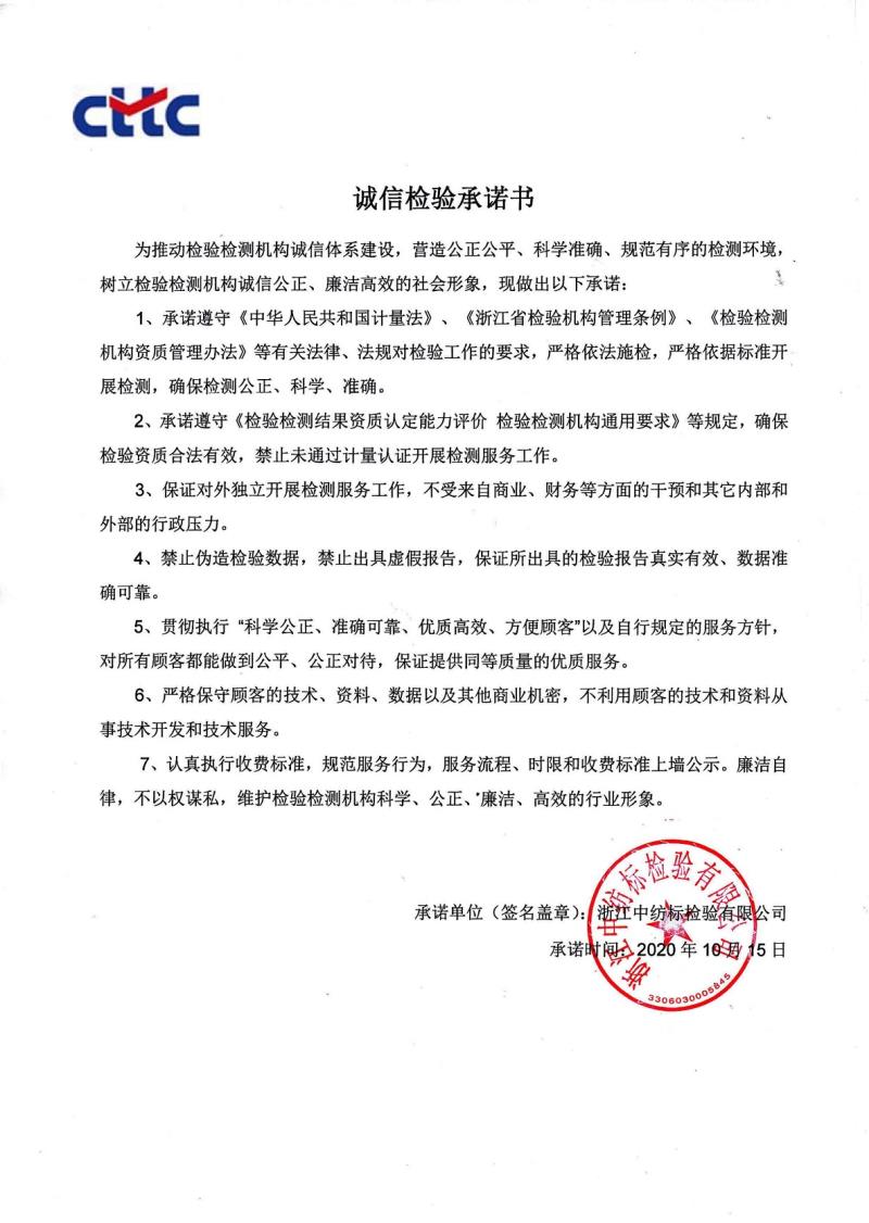 誠信檢驗承諾書